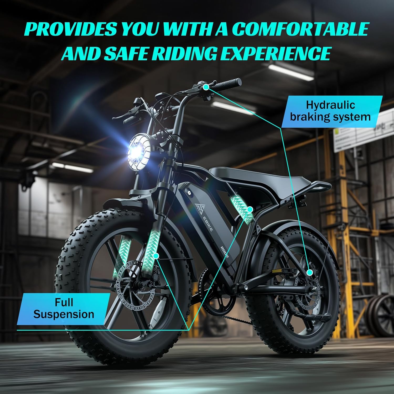 • 【Comfortable Riding Experience】 This fat tire electric bike is equipped with front and rear suspension system, which absorbs most of the bumps and vibrations during riding, providing a more comfortable riding experience and reducing body fatigue.20"x 4" puncture-proof snow tires for electric motorcycle provide a stronger grip, ensuring the vehicle's stability and easily handle any adventure